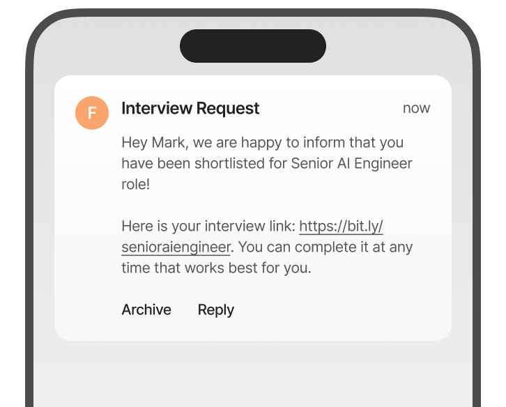 Candidates love Fabric's interviews as they are conversational, available 24/7, and helps candidates complete round 1 interviews immediately.
